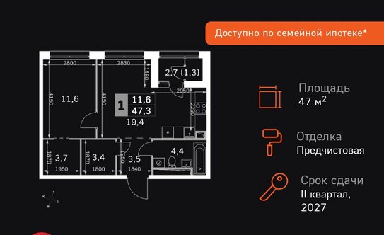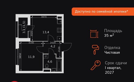 Количество комнат | Площадь, м² | Минимальная цена, млн ₽ (март 2023 года) |