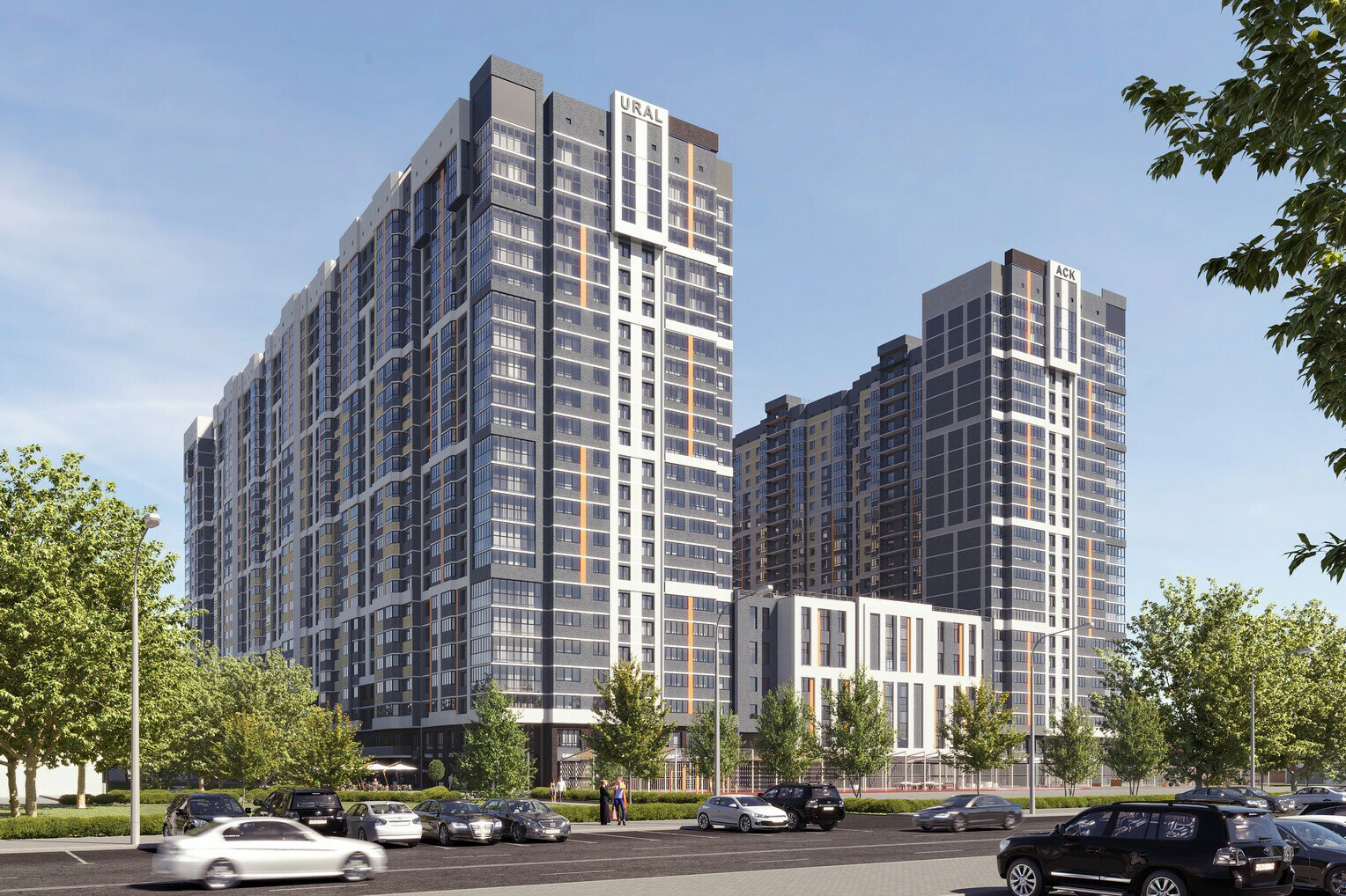 Жилой комплекс комфорт-класса URAL расположен в Карасунском округе Краснодара. В его состав входит один корпус из трёх секций разной этажности, школа, детский сад и коммерческие помещения. ЖК достроен и сдан в эксплуатацию. Подробности — в нашем обзоре.