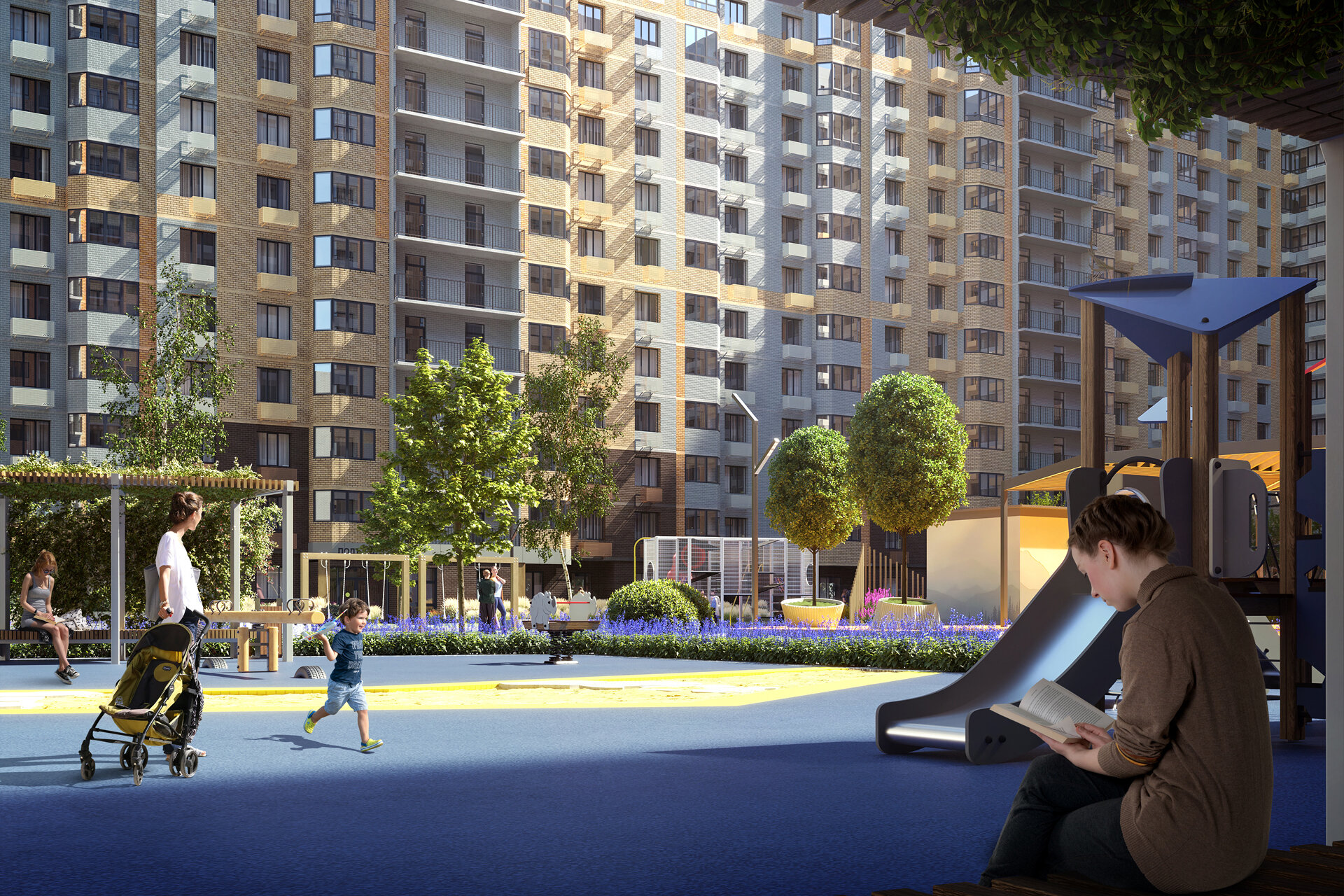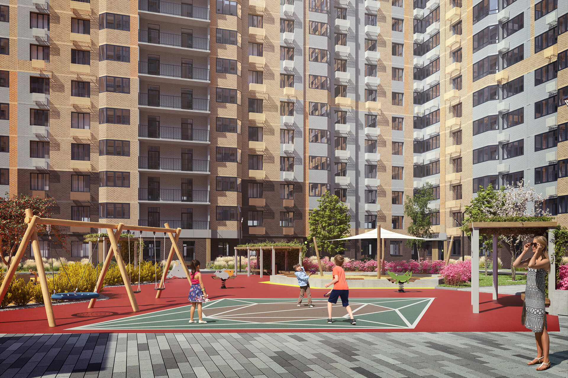 Помимо жилья, проектом предусмотрены подземный паркинг, закрытая территория, детские и спортивные площадки, места для отдыха.