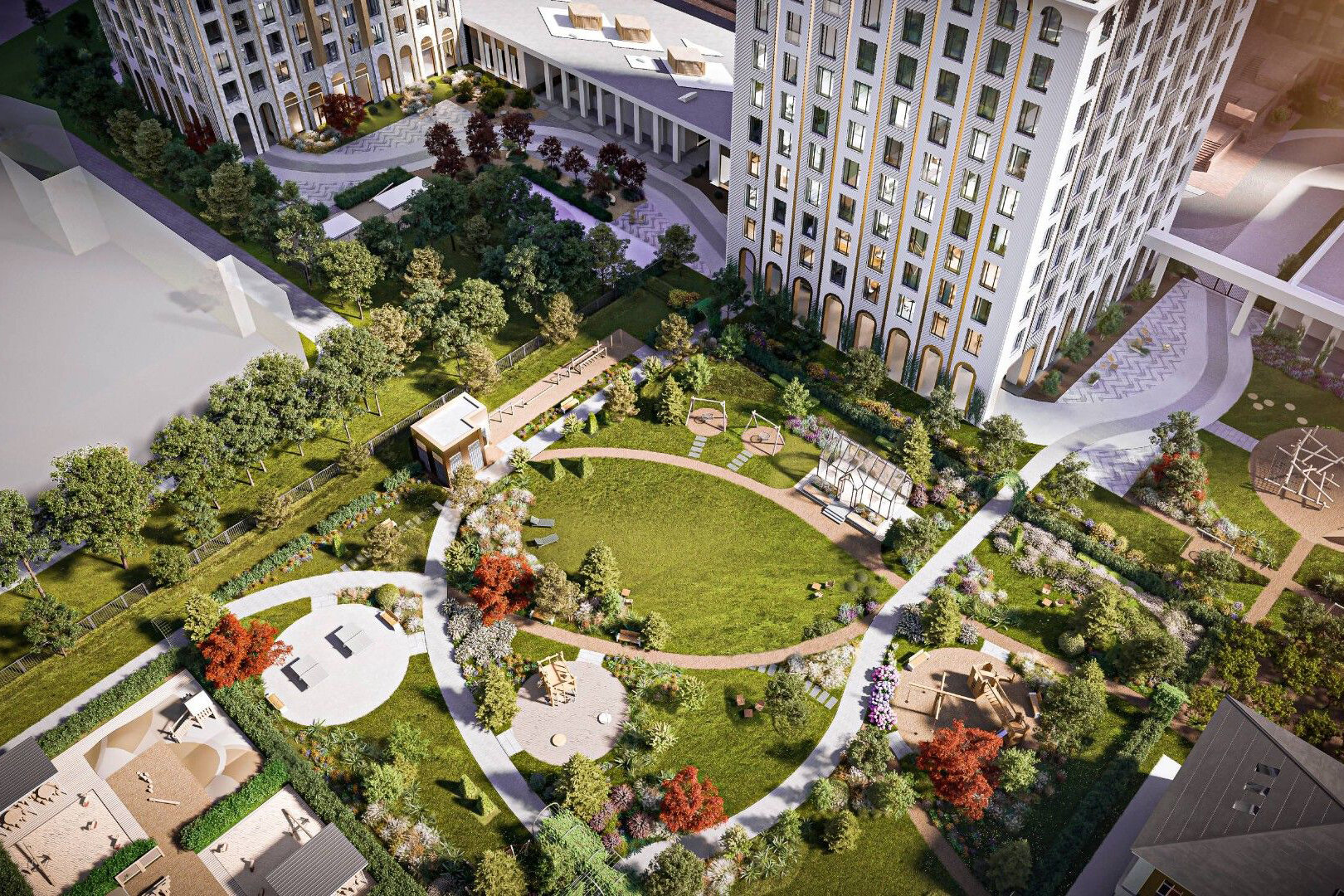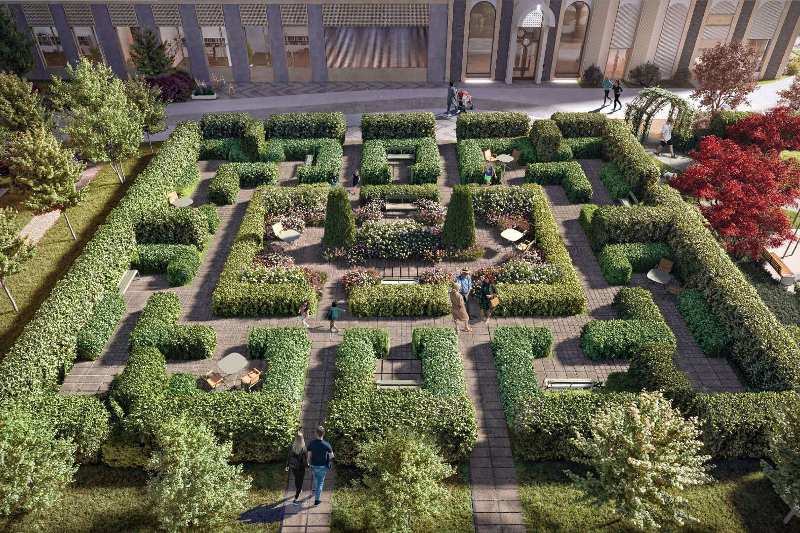 Для прогулок в глубине жилого квартала ERA будет разбит парк с английским газоном, яблоневым садом и арками, увитыми виноградом. Рядом спроектирован зелёный лабиринт из живой изгороди, в его изгибах разместятся скамейки и столики.