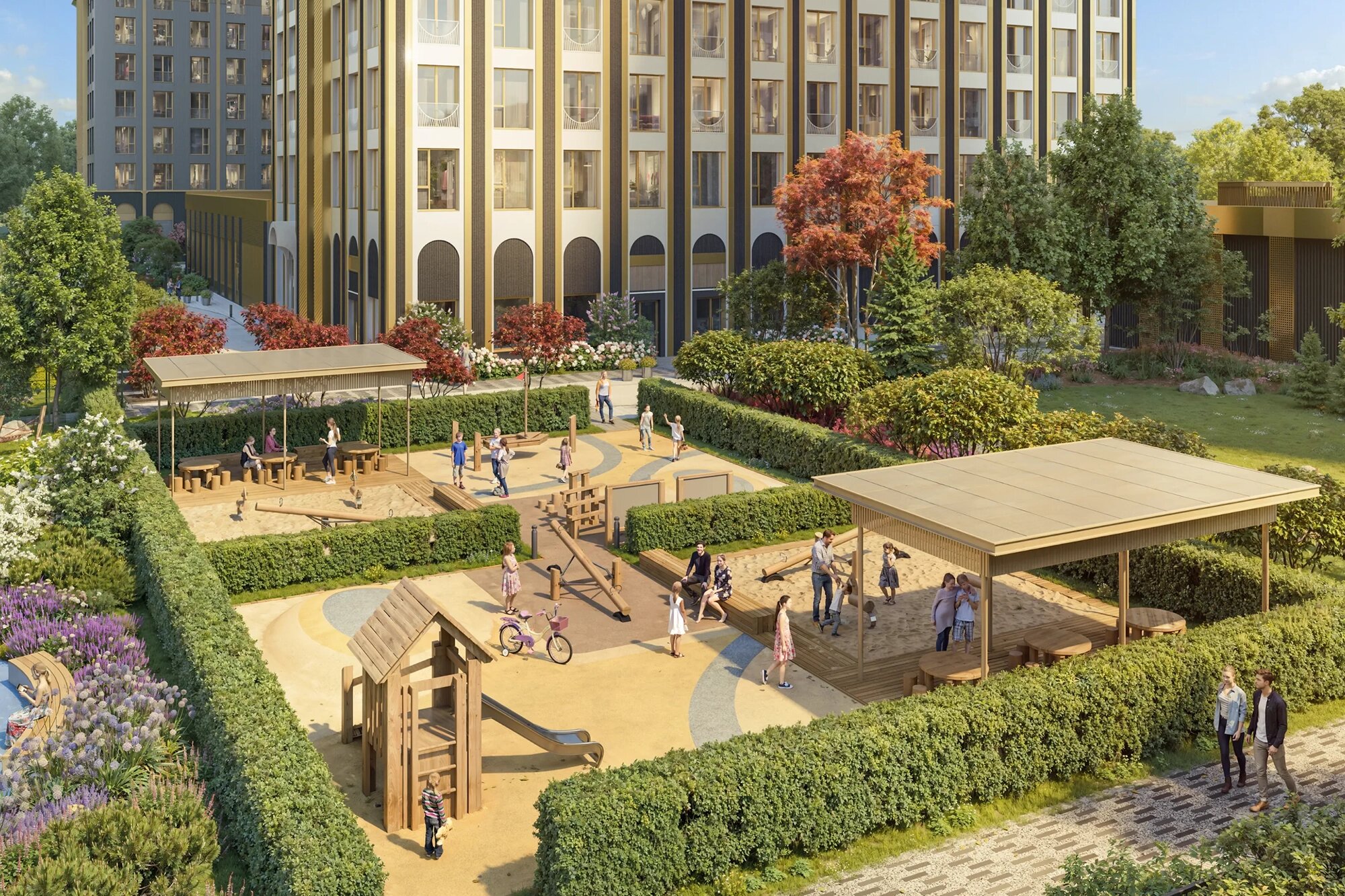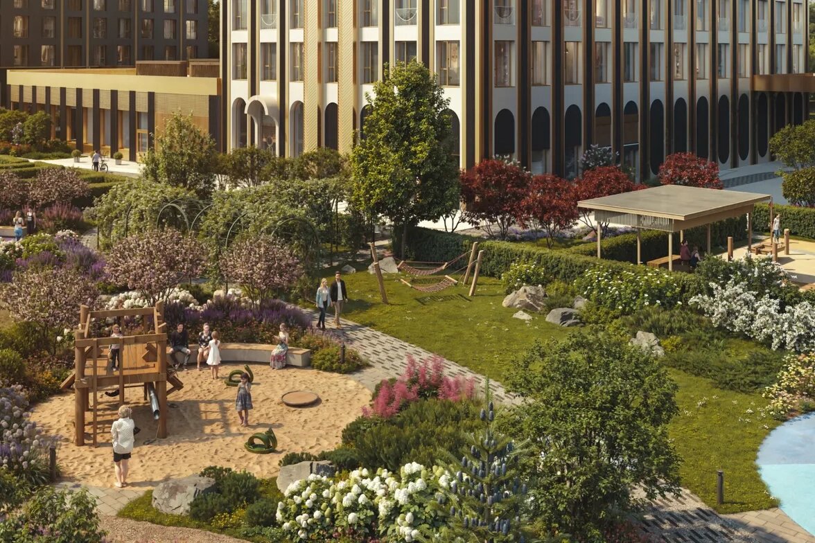 Спорт. На территории жилого квартала запланированы спортивные площадки, зоны с уличными тренажёрами, столики для пинг-понга, площадка для стритбола и скалодром.