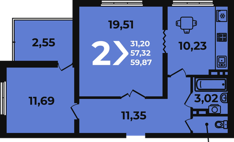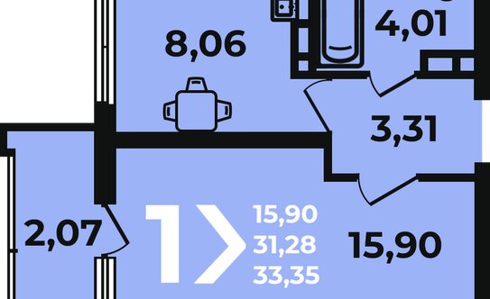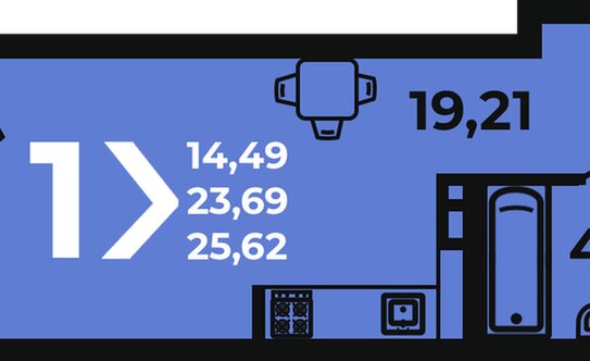 В студиях и однокомнатных квартирах спроектированы совмещённые санузлы с местом под ванну. В каждой такой квартире есть лоджия, в коридоре предусмотрены ниши для обустройства систем хранения. В больших «однушках» площадью 57,2 кв. м спроектирован раздельный санузел.