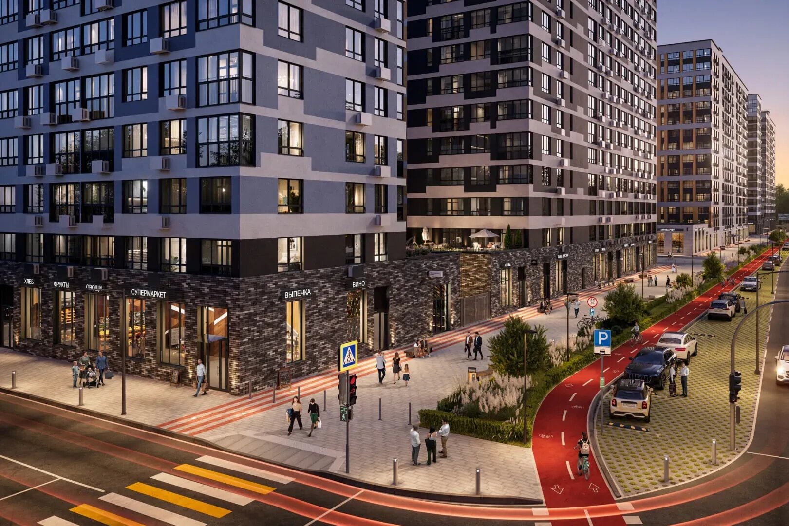 Покупки и отдых. В комплексе «Деснаречье» реализуется концепция «15-минутного города». Она предполагает удобное сообщение между всеми его частями и создание всей необходимой инфраструктуры в шаговой доступности.