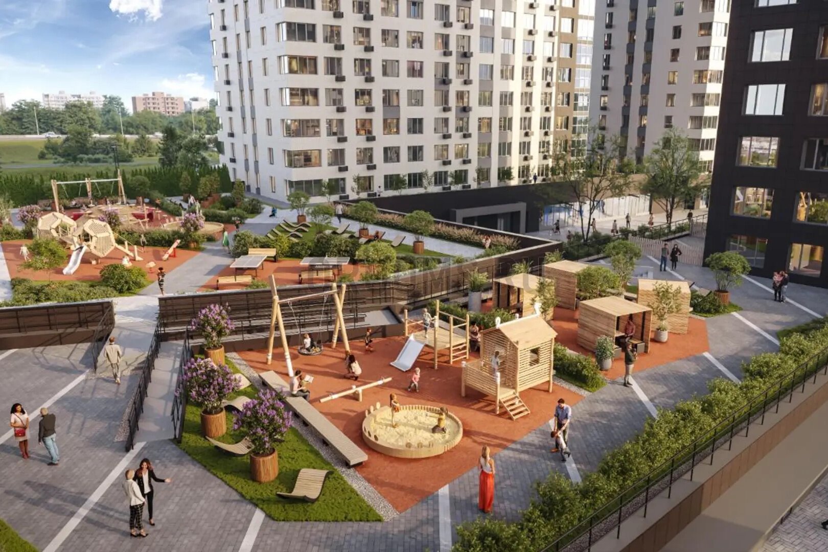 Для детей. На территории EVO построят детский сад на 180 мест и общеобразовательную школу на 750 мест. Кроме того, в закрытом дворе ЖК оборудуют три игровые площадки для детей разного возраста.