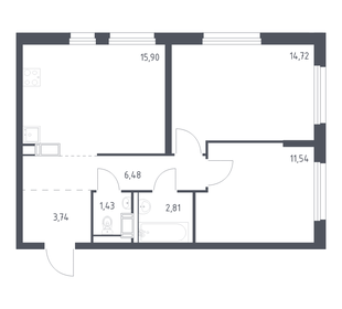 Габариты однокомнатных квартир варьируются от 29,97 до 48,73 кв. м, двухкомнатных — от 51,76 до 54,61 кв. м. Самая большая квартира из представленных на сайте застройщика — трёхкомнатная площадью 70,54 кв. м.