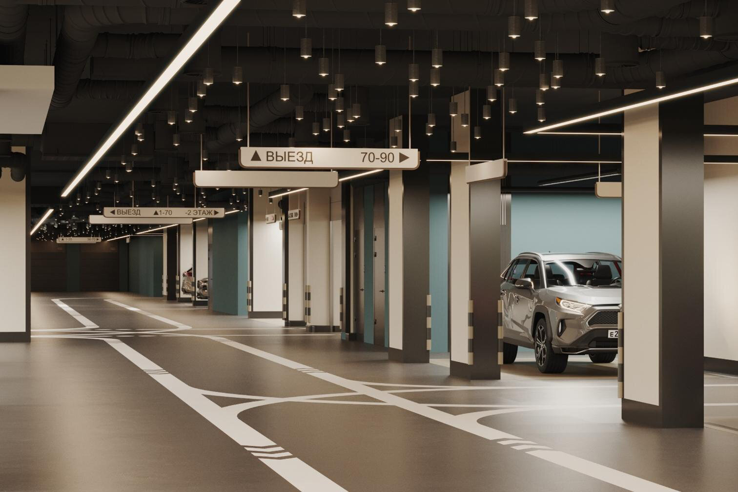 Паркинг. На территории ЖК будет подземный паркинг на 279 машиномест с автомойкой. Также предусмотрена возможность установки зарядных станций для электромобилей.