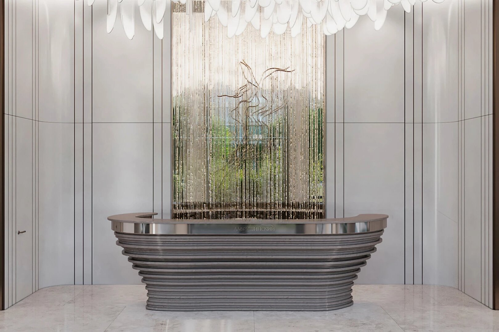 Входные группы. В холлах корпусов будет расположена стойка консьержа и лобби-бар. Для персонала сделают отдельный сервисный лифт.