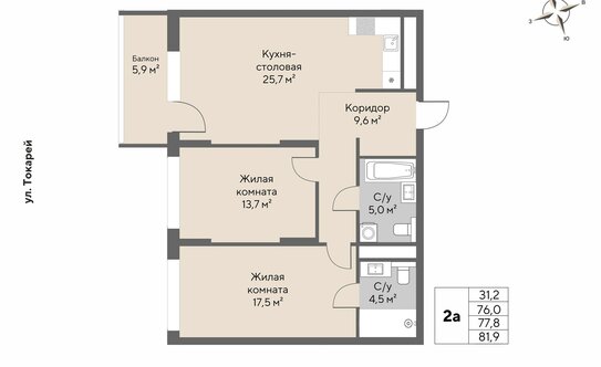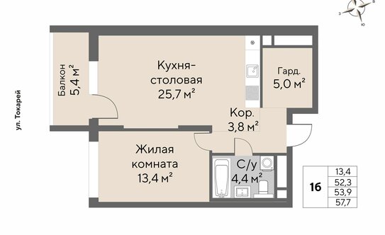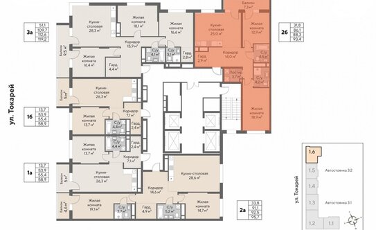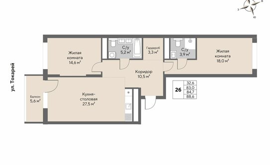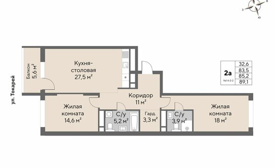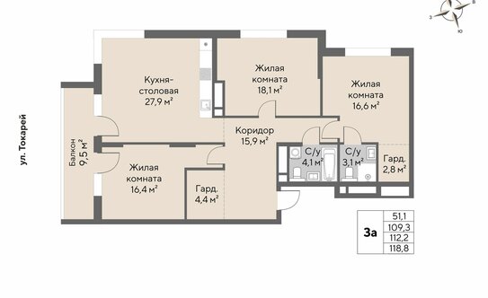 В ЖК продаются 1, 2 и 3-комнатные квартиры евроформата с кухней-гостиной. Площадь жилья — от 53,2 до 116,4 кв. м. Высота потолков — от 2,8 до 3,3 м.