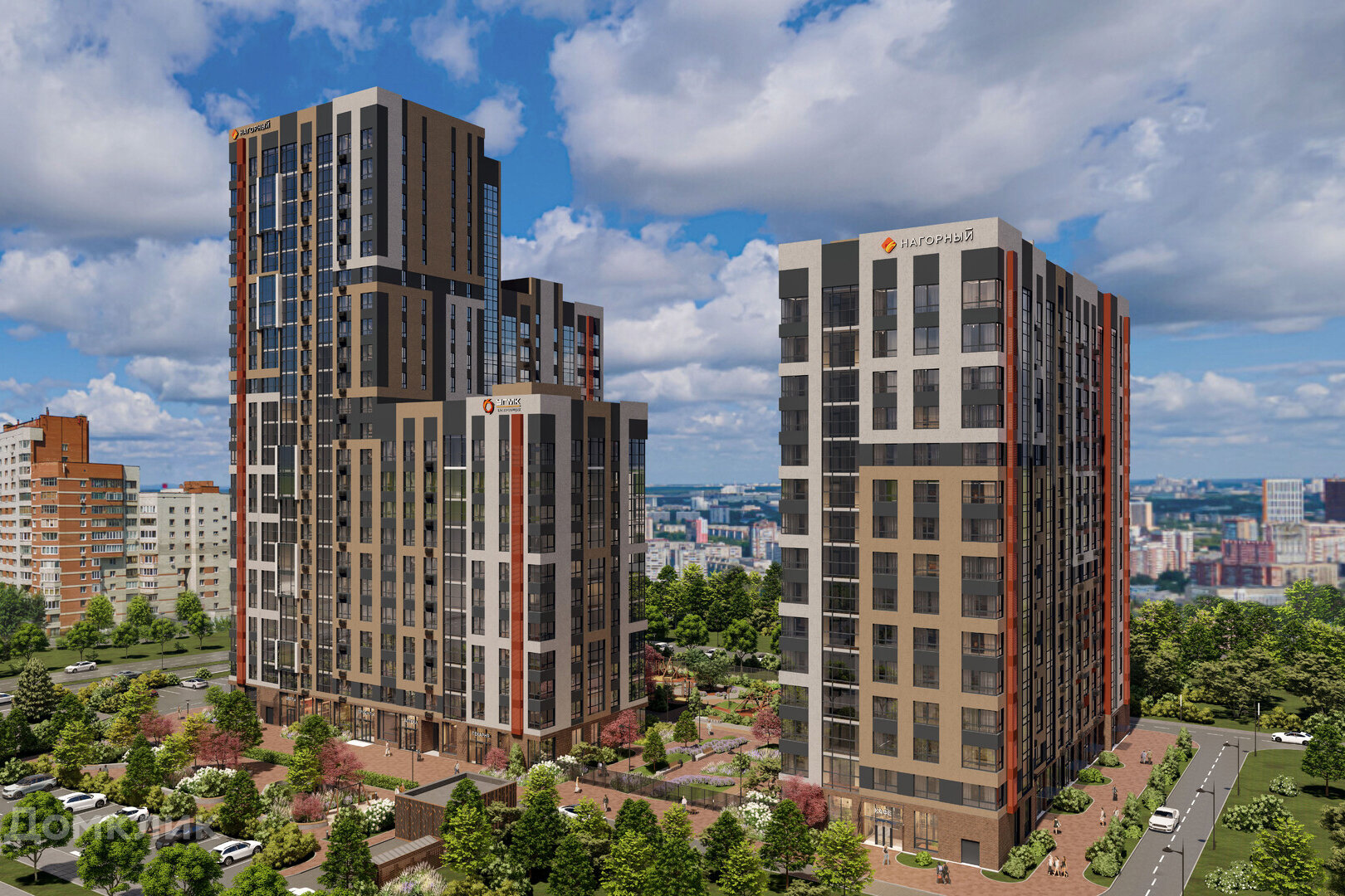 Комплекс «Нагорный» состоит из трёх очередей с разновысотными секциями: