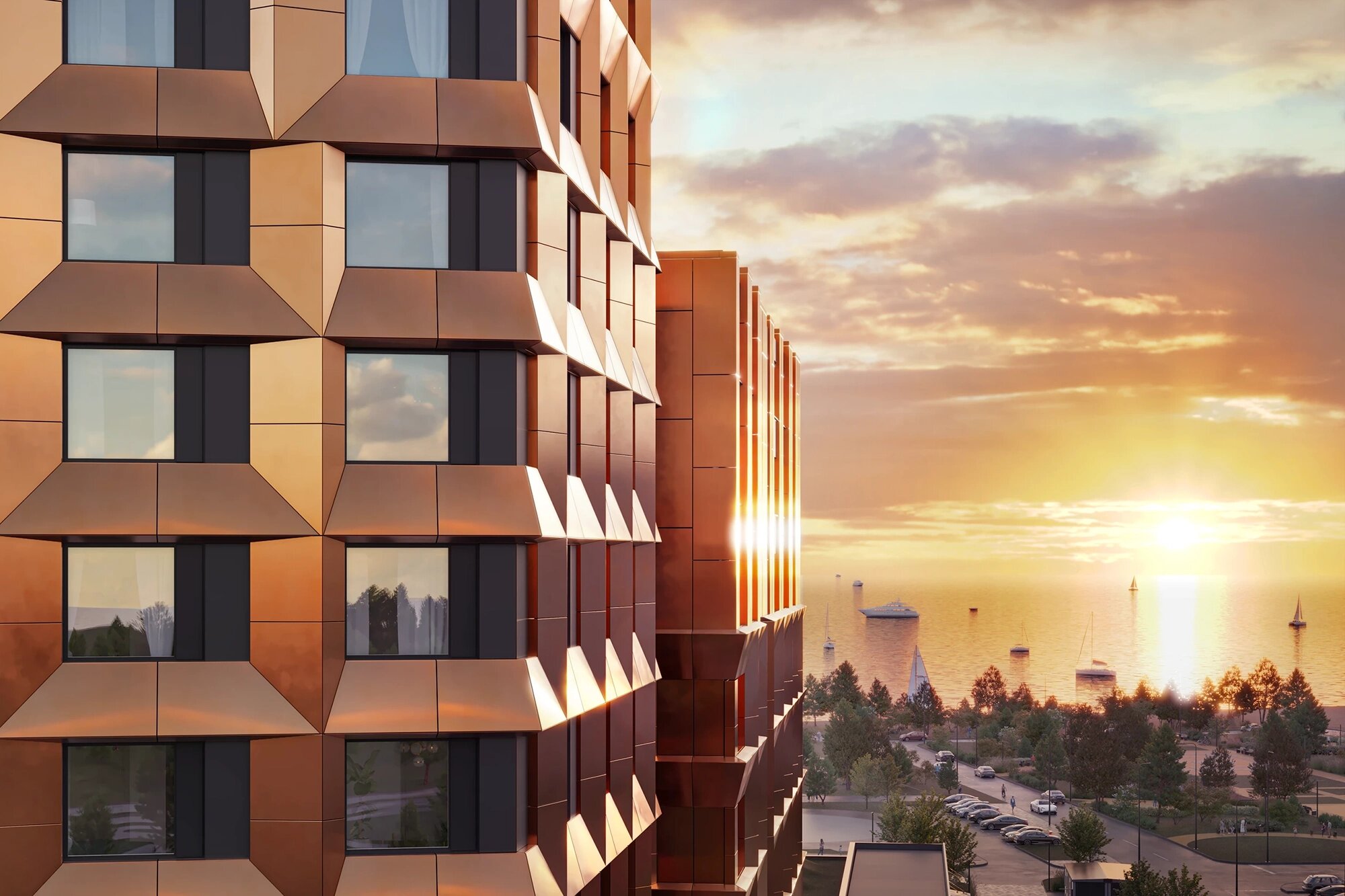 - Ну что за красотища)) Рядом море, набережная. Сами дома будут в приятных натуральных оттенках и формы фасадов такие необычные. Залипательно, если честно) Легенда себе не изменяет.