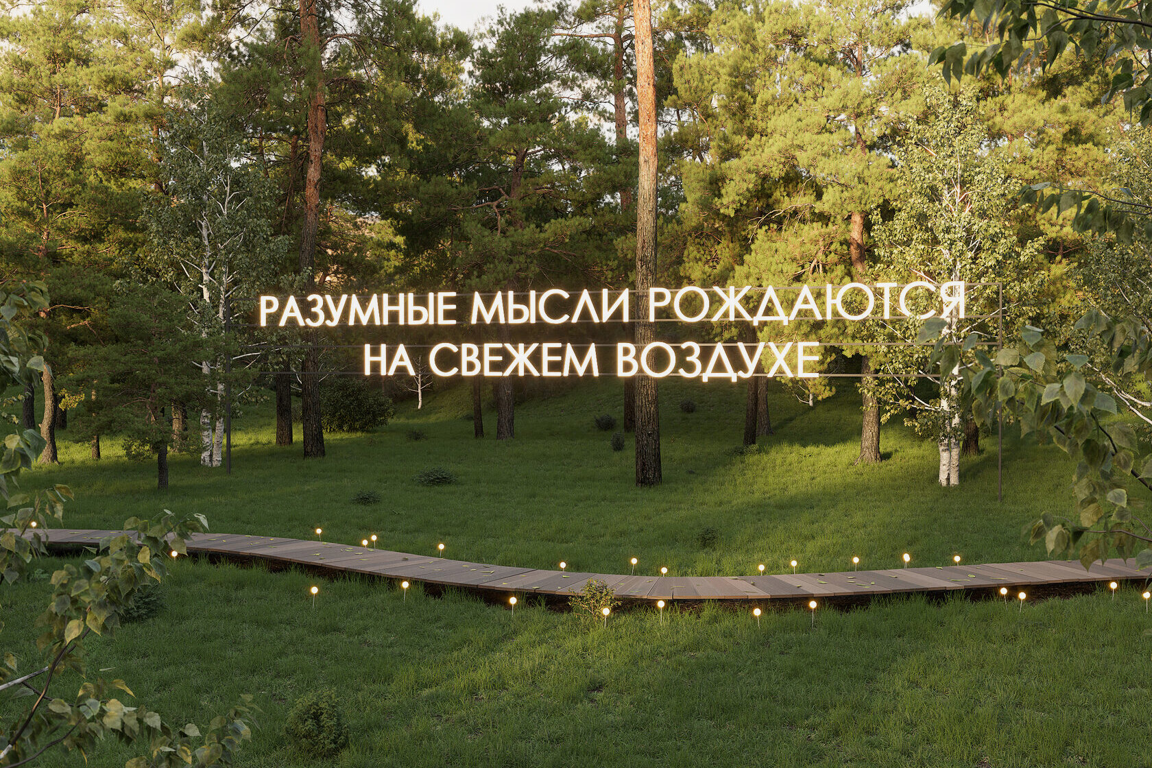 Покупки и отдых. В лесу около комплекса обустроят экотропу для прогулок.