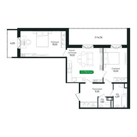 Однокомнатные квартиры имеют размеры от 38,7 до 44,7 кв. м. Площадь двухкомнатных варьируется от 45,95 до 75,19 кв. м. Самые большие квартиры в комплексе — трёхкомнатные, их метраж составляет от 70,72 до 80,52 кв. м.