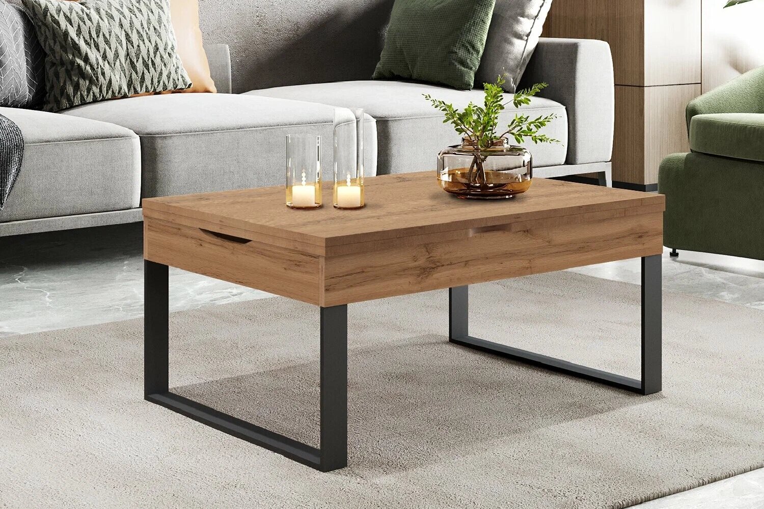 Ещё один вариант, но уже для отдыха — журнальные столики, которые превращаются в полноценный обеденный или рабочий стол. В повседневности они занимают минимум места, а в нужный момент могут легко стать центром комнаты.
