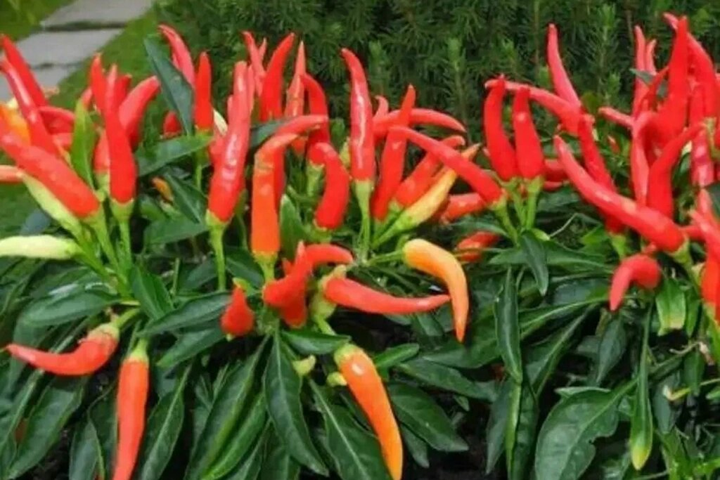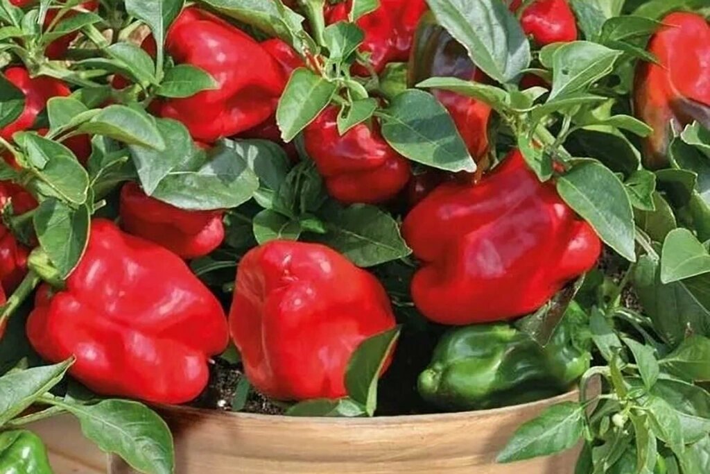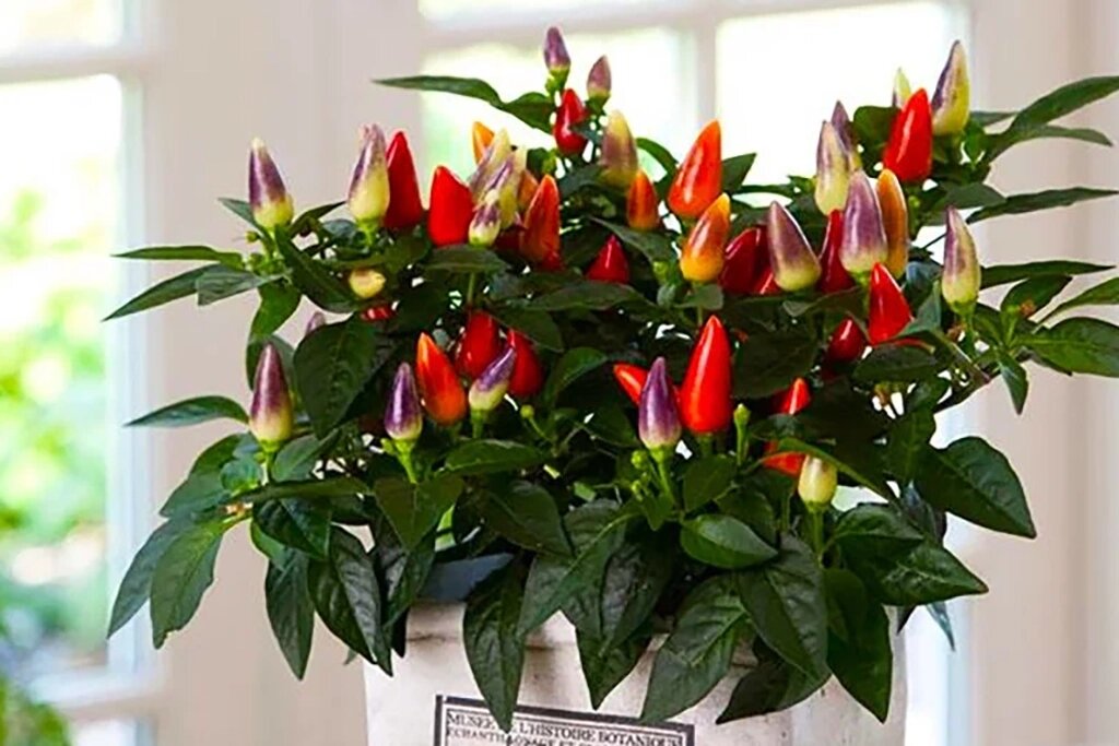 Сладкий перец. Есть много сортов для комнатного выращивания. Например, «Сиреневый блеск», «Пик», «Фиеста», «Кузя», «Тёма», «Яркие лучи».