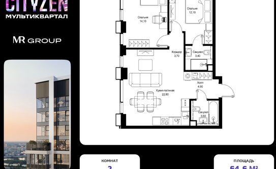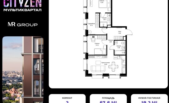 - 30,39 млн ₽Москва, ЖК Ситизен, к3Тушинская 11 мин.