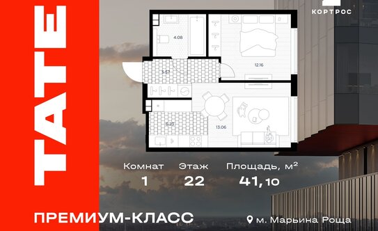 - 37,42 млн ₽Москва, ЖК ТэйтМарьина Роща 13 мин.
