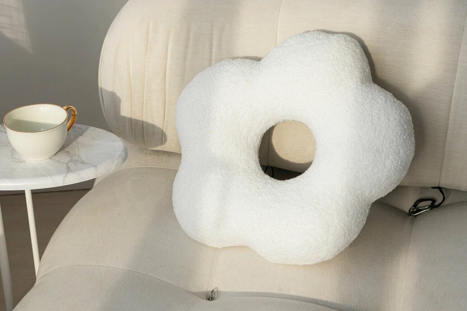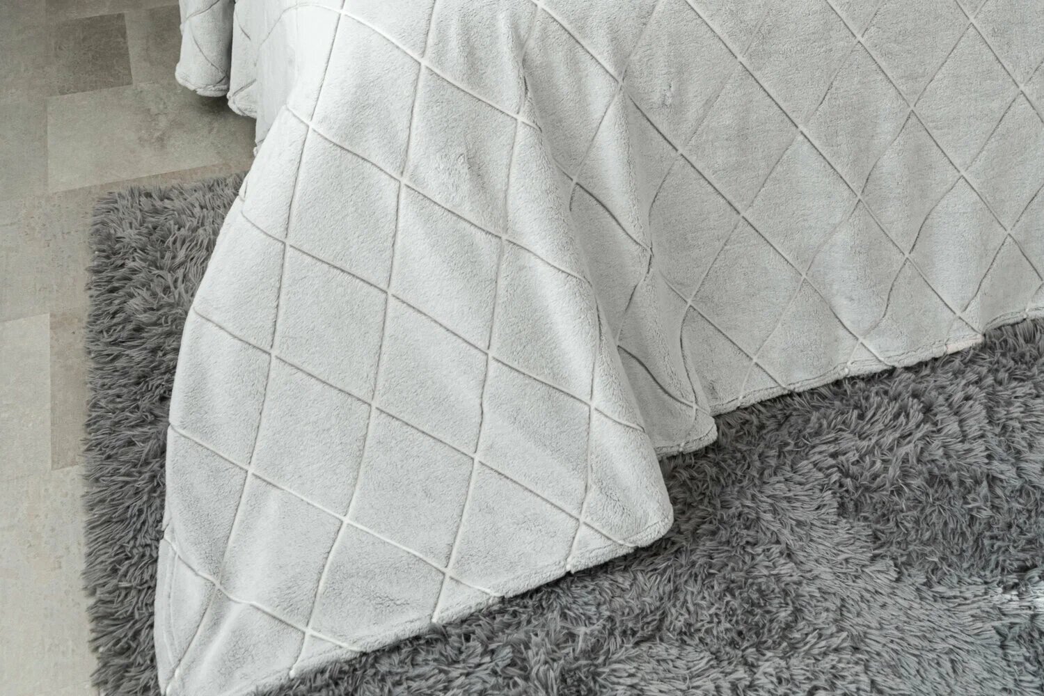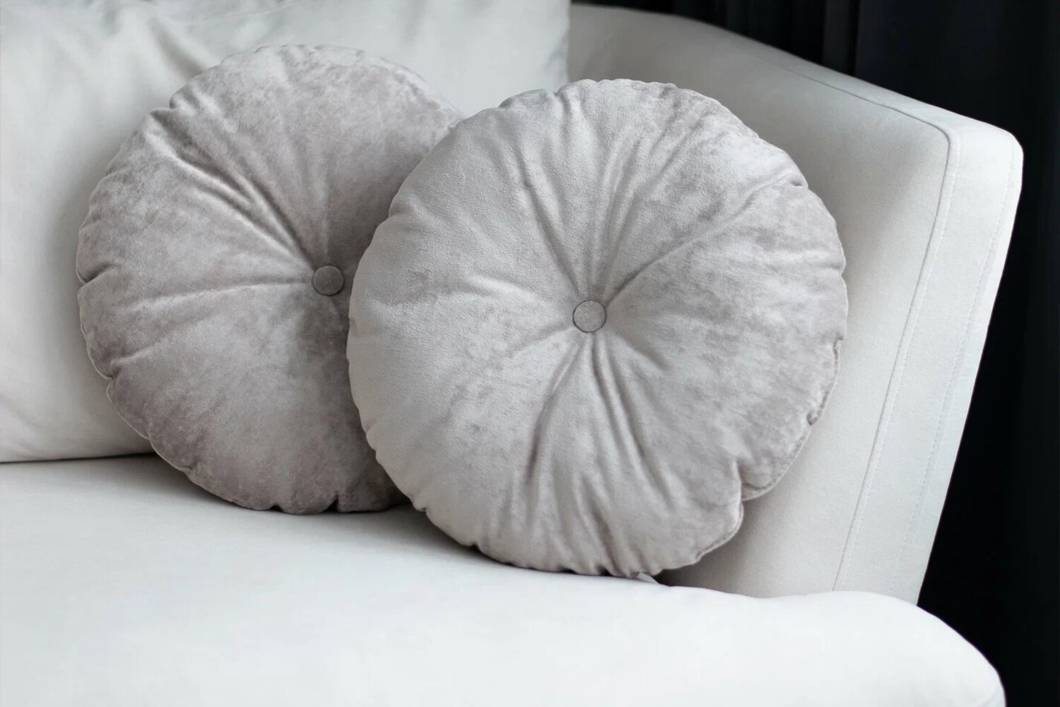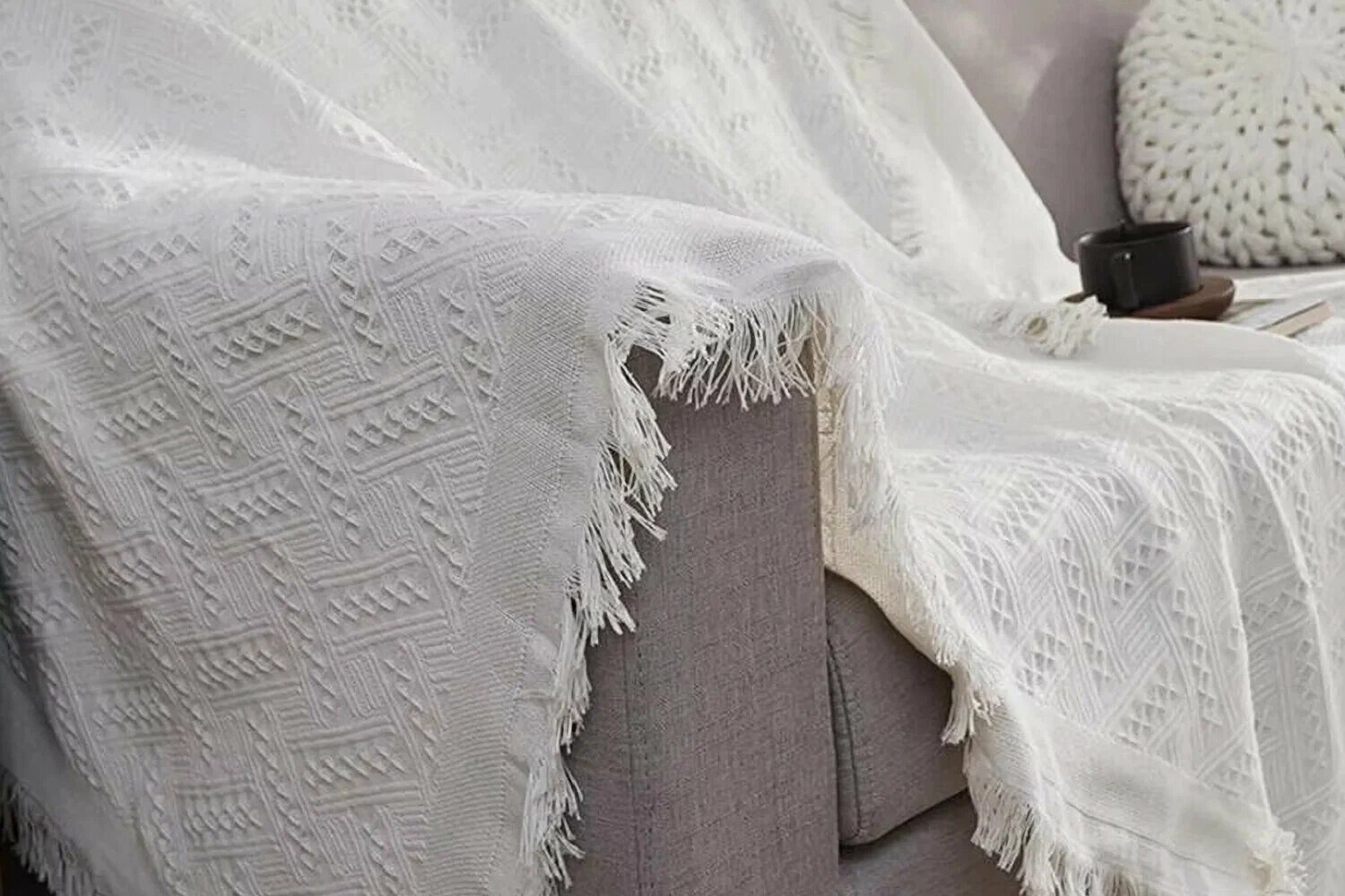 Если хочется «облака» на диване — выбирайте пледы из шерсти или мягкого хлопка в оттенках спокойного белого, тёплого серого или светлой охры (одна из подходящих палитр Pantone). Подойдут: плед с лёгкой фактурой, декоративные подушки молочного цвета, чехлы на стулья.