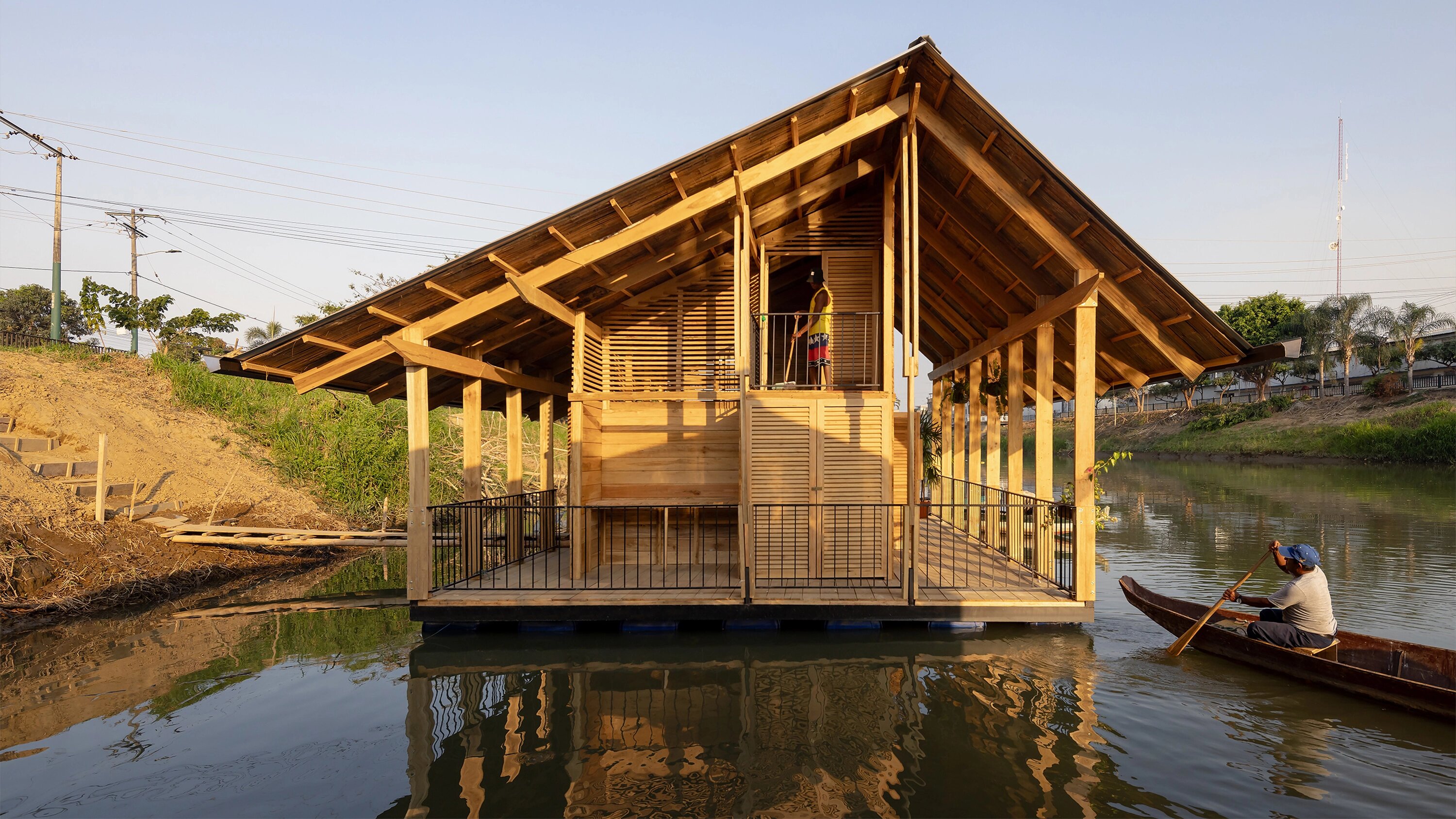 Пока на Бали рассекают яхты, на берегах реки Бабахойо в Эквадоре тихо покачиваются дома-плоты. Студия Natura Futura Arquitectura вместе с местными жителями решила возродить архитектурные традиции: от двух сотен плавучих домов, существовавших пару веков назад, сохранилось меньше десяти.