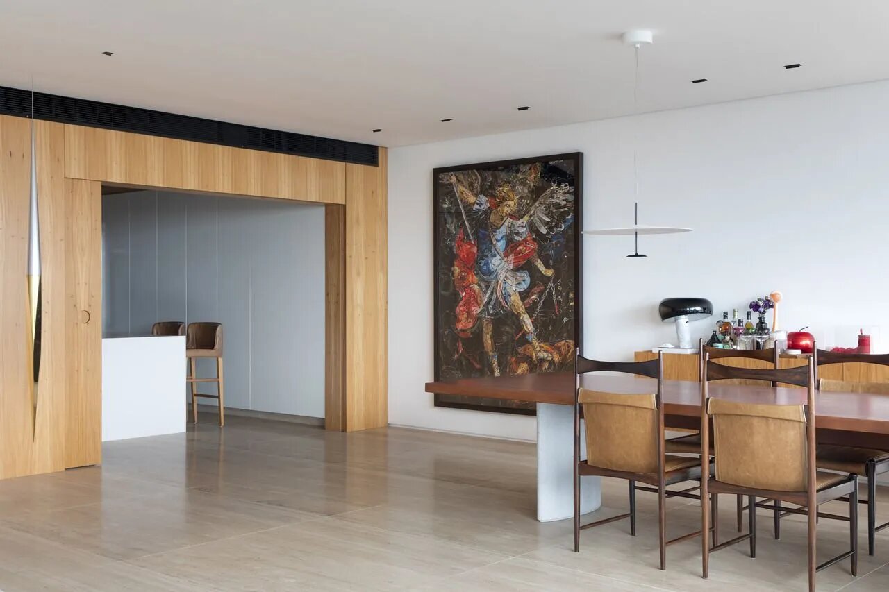 Семейное гнёздышко в знойном Рио-де-Жанейро с панорамным видом на океанские волны и песчаный пляж: дизайнер Бьянка да Ора вдохнула новую жизнь в своё жилище при помощи природных оттенков, натурального дерева и семейной коллекции современного искусства.