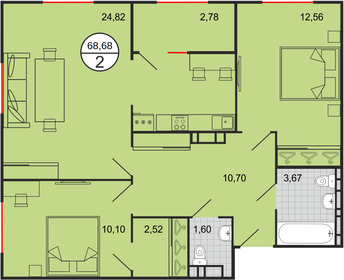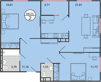 - двухкомнатные площадью от 67,8 до 68,68 кв. м. В них по две изолированные комнаты, раздельные санузлы, балконы, кухни-гостиные.