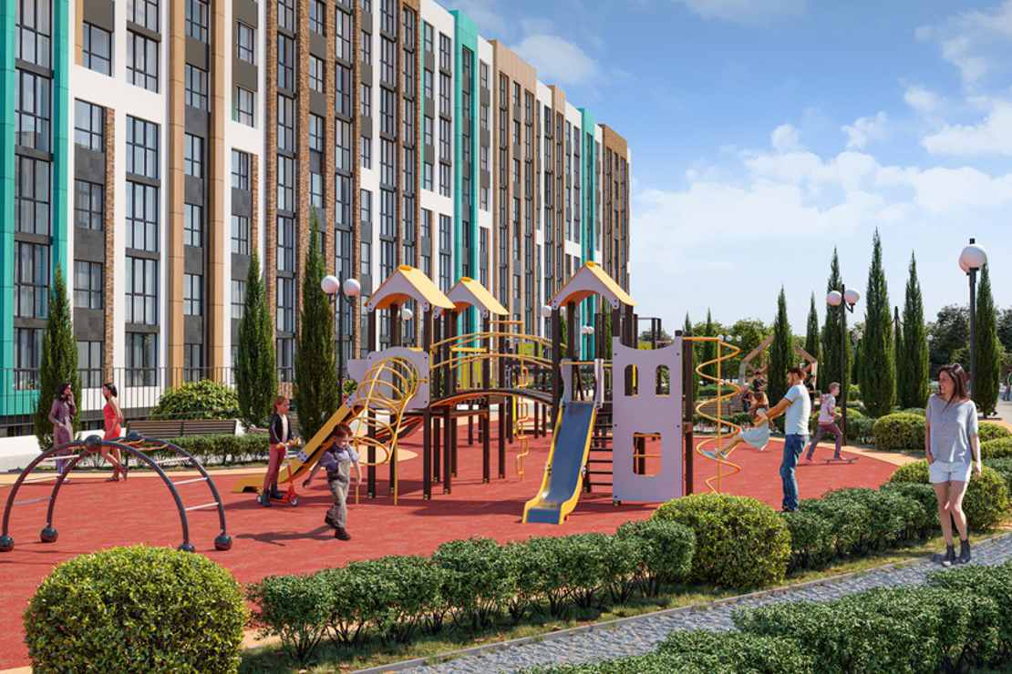 Для детей. Во дворах будут оборудованы игровые площадки для детей с песочницами, горками, качелями. Рядом с ЖК есть несколько детских садов и школ.