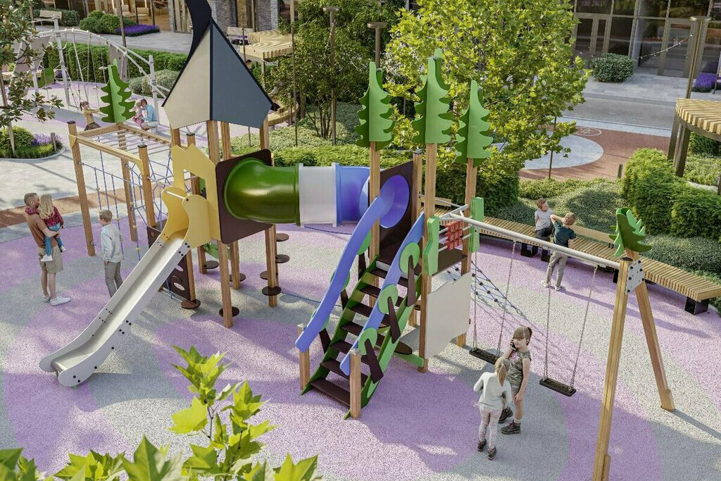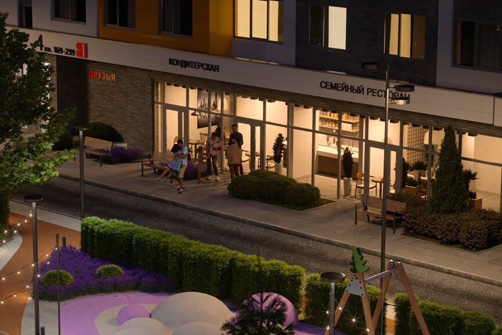 Покупки и развлечения. Помимо площадки на свежем воздухе, для детей откроют игровую комнату внутри дома. Отдельные пространства будут отданы под коммерческие помещения, которые должны занять кафе, магазины и рестораны.