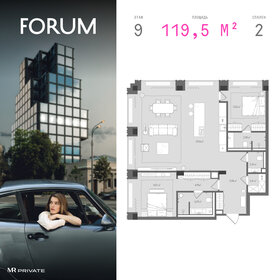 В феврале 2025 года в доме Forum представлены квартиры с одной, двумя и тремя комнатами площадью от 85 до 171,1 кв. м. Верхние этажи отданы под пентхаусы с личными террасами. В каждой квартире — панорамное остекление и французский балкон.