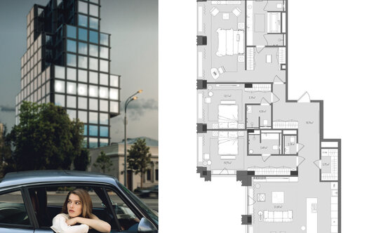 На продажу в клубном доме выставлены квартиры с одной, двумя и тремя комнатами. В проекте предусмотрены и четырёхкомнатные планировки, но предложения от застройщика уже закончились — искать их придётся на вторичном рынке.