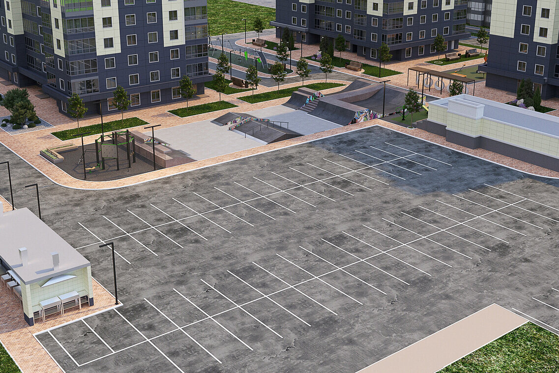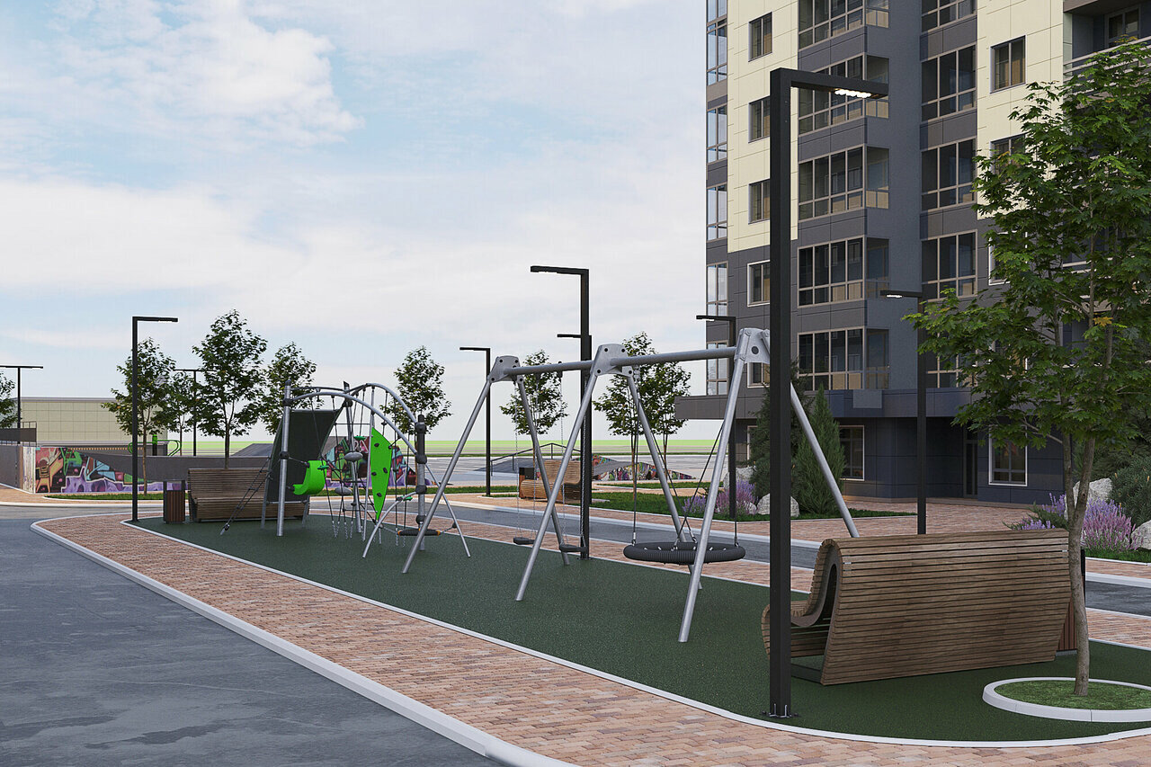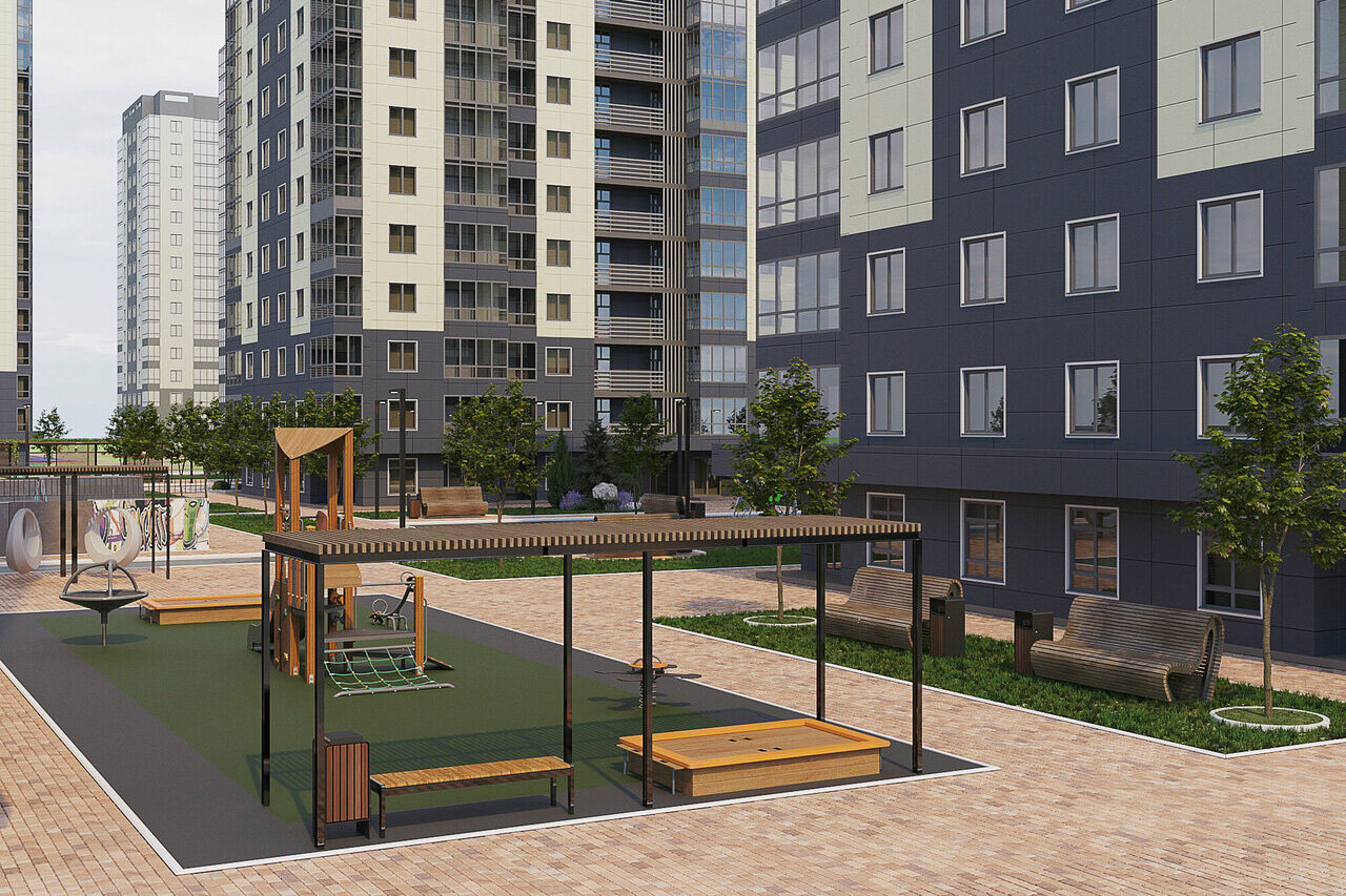 Дворы. Дворы будут благоустроены и закрыты от посторонних. Территорию разделят на тематические зоны: для детей построят площадки с безопасным покрытием, а для взрослых — зоны для игровых видов спорта. Во дворах также установят площадки для барбекю.