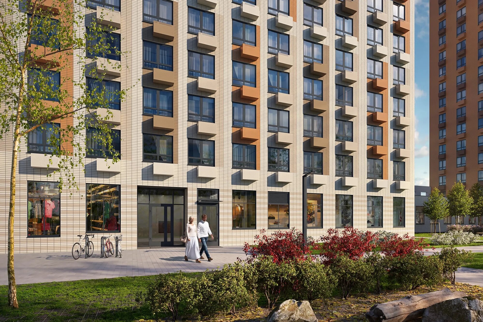 Покупки и отдых. Первые этажи жилого комплекса «Открытый парк» отведены под коммерческие помещения, в которых откроются супермаркеты, магазины, кофейни, пекарни, салоны красоты, аптеки и пр.