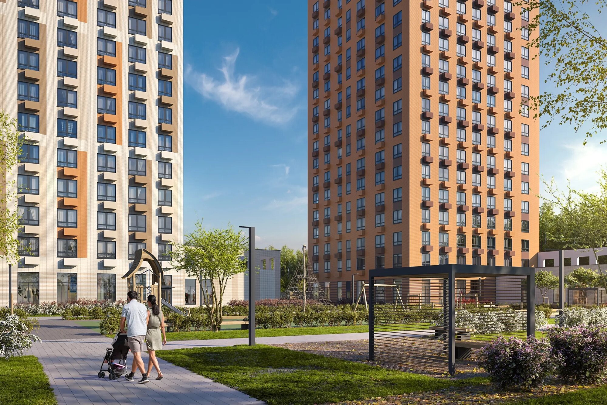 Двор. Во дворах оборудуют современные детские площадки, а также зоны для отдыха. Рядом с жилыми корпусами обустроят спортивные зоны с различными тренажёрами: турниками, брусьями, ступенями для кроссфита и т.п. На территории комплекса проведут озеленение.