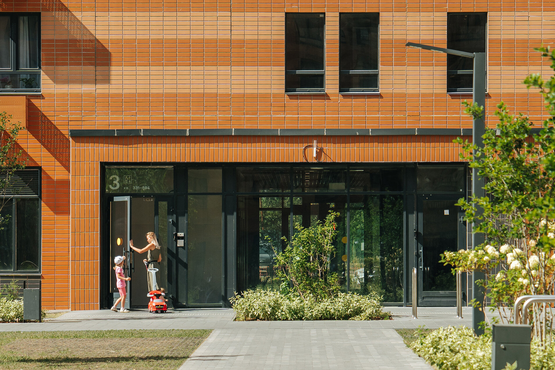 Входные группы. Подъезды спроектированы на уровне земли, они не имеют порогов и пандусов. В домах установят скоростные лифты и современные домофоны с видеокамерами.