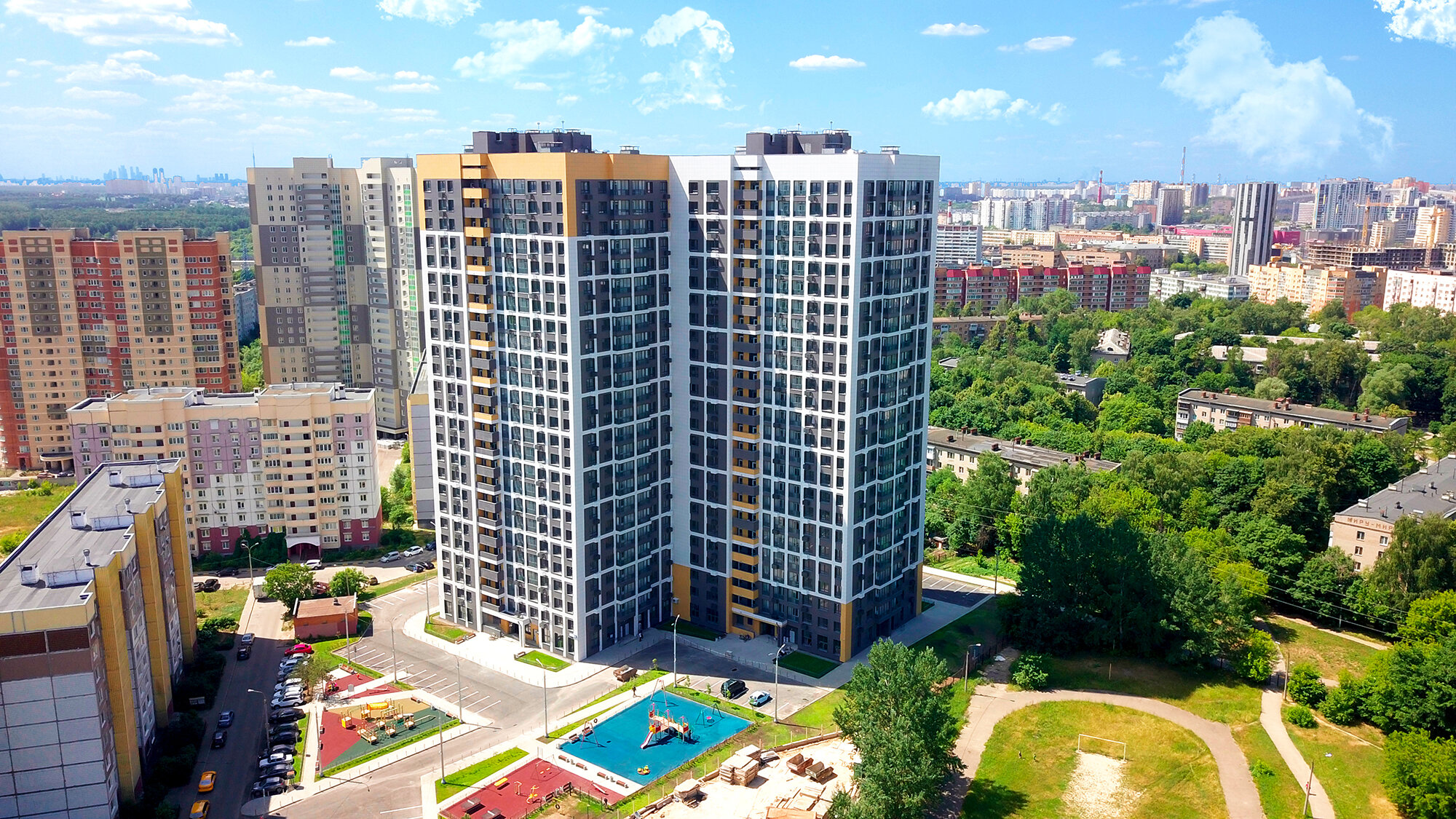 - Отличный микрорайон в г.Мытищи точечной застройки на местах домов попавших в программу по переселению жителей из ветхого жилья. Снесли старые двухэтажки и построили современные многоэтажные дома со всеми удобствами с детскими садами и дополнительным новым зданием школы.