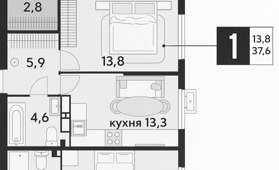 В компактных «однушках» есть кухня, спальня и совмещённый санузел с местом под ванну. Встречаются варианты с лоджиями. В самых просторных однокомнатных квартирах спроектирована кухня-гостиная, а также раздельный санузел.
