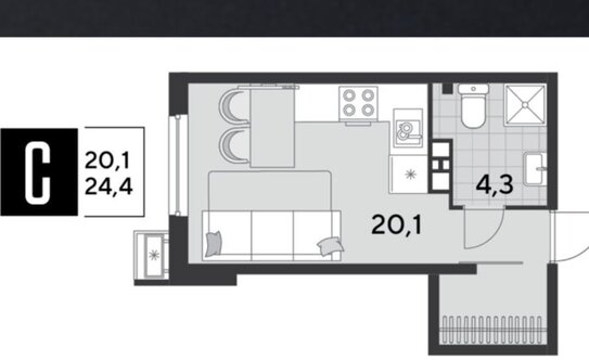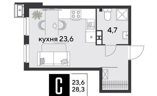 В студиях спроектированы совмещённые санузлы с местом под душевую кабину, в прихожей есть ниша для хранения вещей. Можно выбрать варианты с небольшой гардеробной или лоджией.