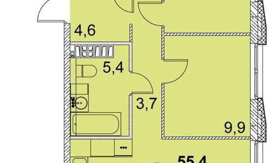 - двухкомнатные — 131 планировка площадью от 52,3 до 72,3 кв. м;