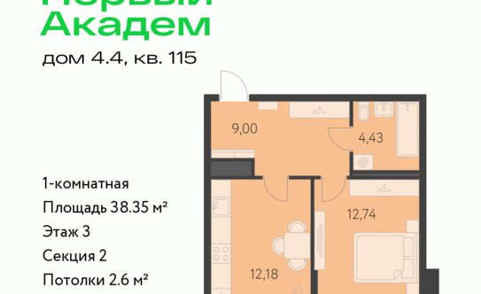 - 4,2 млн ₽Свердловская область, Екатеринбург, микрорайон Академический, ЖК Первый АкадемПлощадь 1905 года 28 мин.