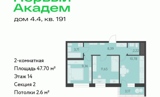 - 8,21 млн ₽Екатеринбург, микрорайон Академический, ЖК Первый АкадемПлощадь 1905 года 28 мин.