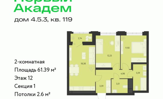 «Первый Академ» — это два жилых квартала комфорт-класса в Академическом районе Екатеринбурга. Первый блок комплекса сдадут в первом квартале 2025 года, второй — в первом квартале 2026 года. В ЖК продаются студии и квартиры с 1, 2, 3 и 4 комнатами. Цены на жильё начинаются от 3,5 млн рублей.