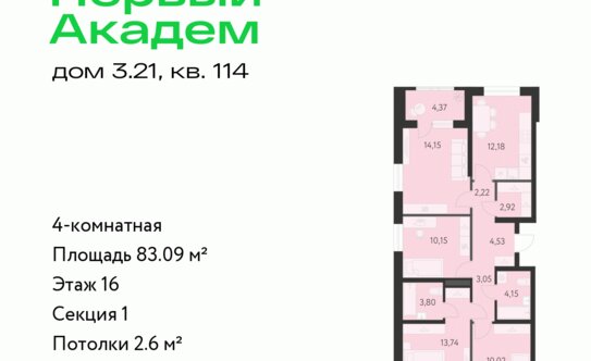- четырёхкомнатные — 3 планировки площадью от 81,7 до 84,2 кв. м.