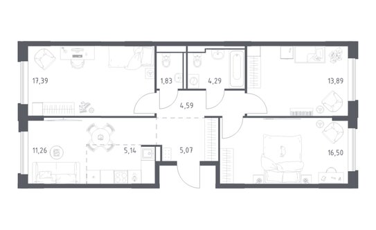 - Четырёхкомнатные квартиры от 70,3 до 87,5 кв. метров.