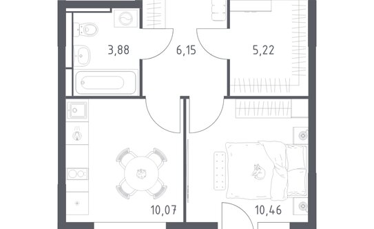 - Двухкомнатные квартиры от 32,2 до 60,5 кв. метров;