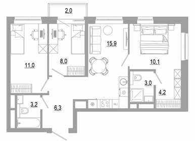 По данным Яндекс Недвижимости на октябрь 2025 года, средняя стоимость квадратного метра в студиях составляет 195,4 тыс. рублей, а в трёхкомнатных — 145,7 тыс. рублей.