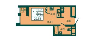 Студия | От 29,2 | 4,6 | 172,9 |