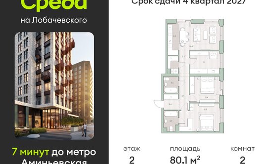 - 35,41 млн ₽Москва, микрорайон Очаково, ЖК Среда на Лобачевского, к5.5Очаково 18 мин.