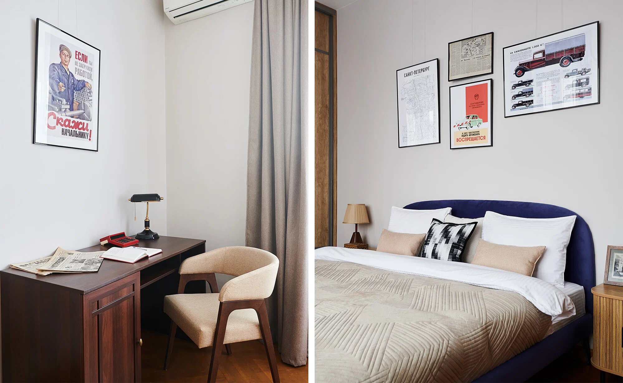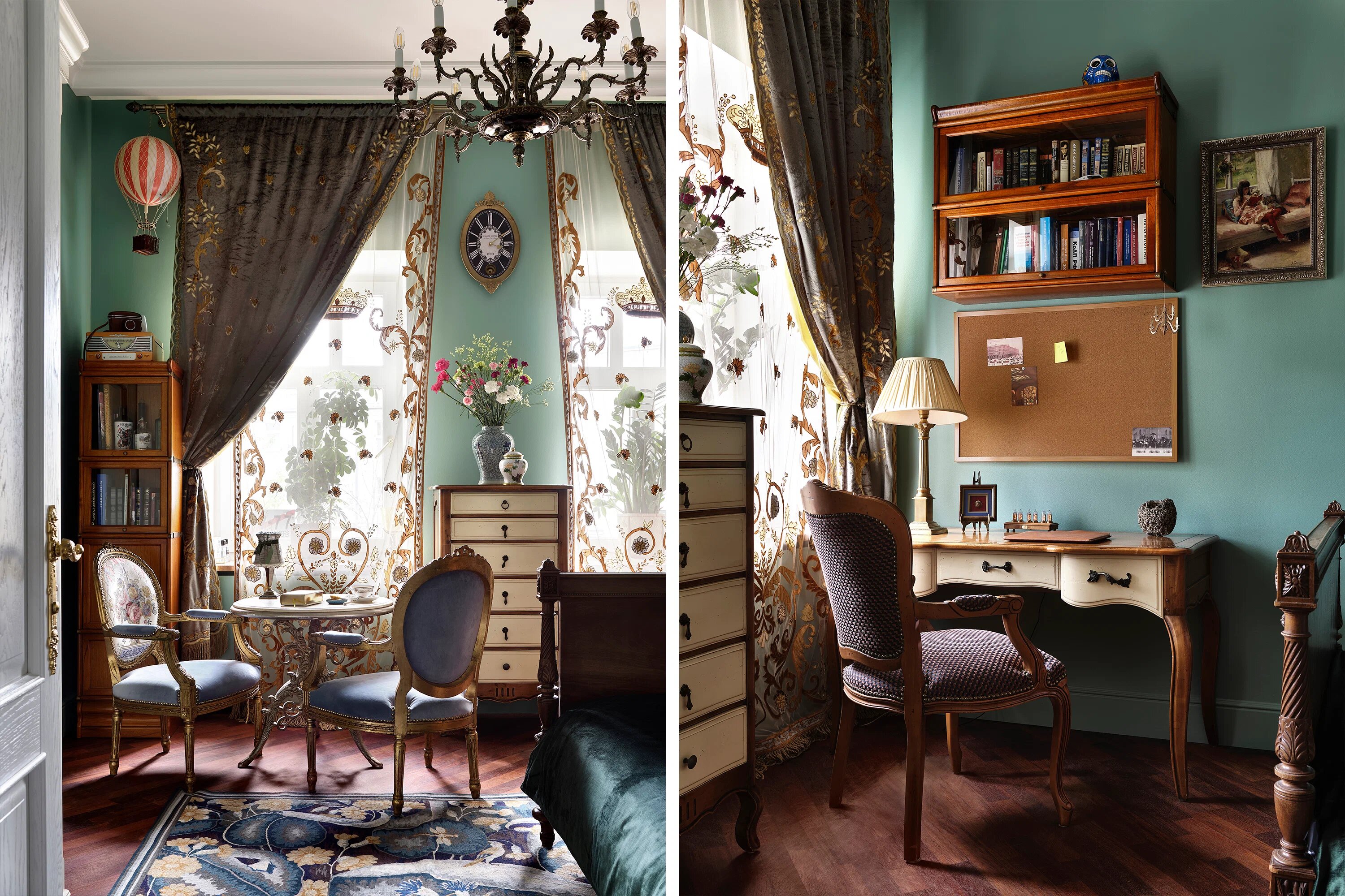 Правда, исходные данные уже были достаточно хороши: качественный паркет, антресоли, встроенные шкафы позволили сохранить многое из оригинальной отделки и хорошо сэкономить. Дизайнеру оставалось только освежить цвета, мебель и декор, чтобы адаптировать пространство под современные стандарты. Результат получился выразительным и атмосферным, хоть и без масштабных переделок.