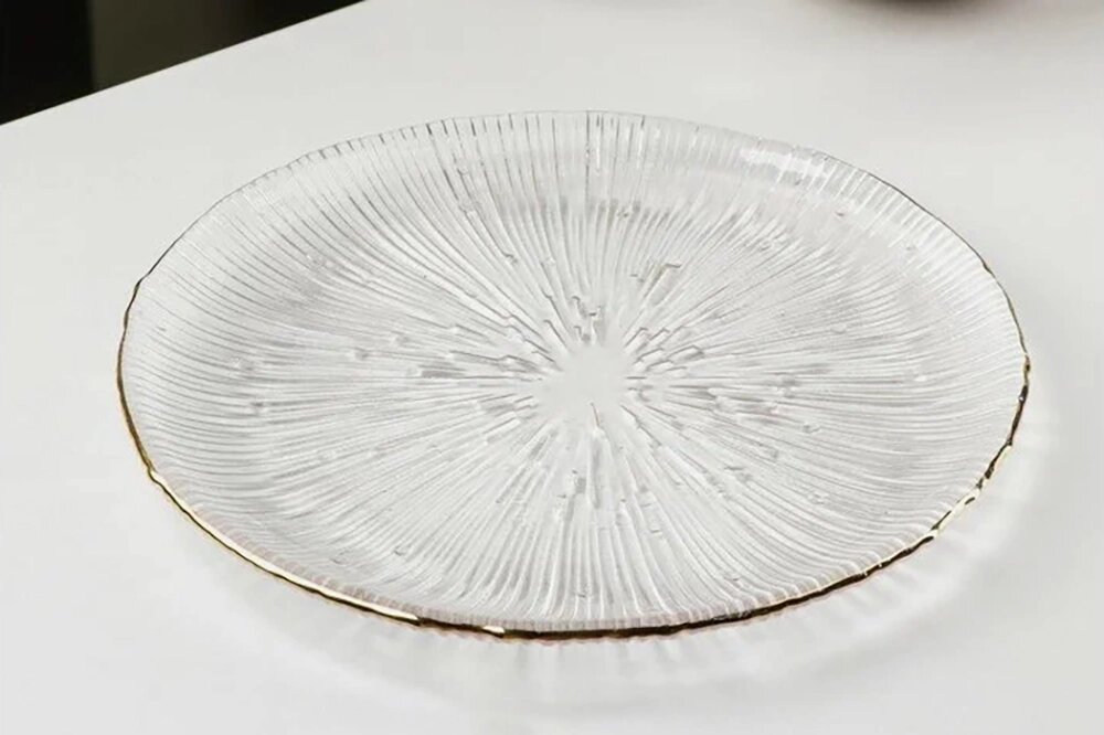 - подстановочная тарелка с оттенками золота, чёрного, металла, с фактурной керамикой;