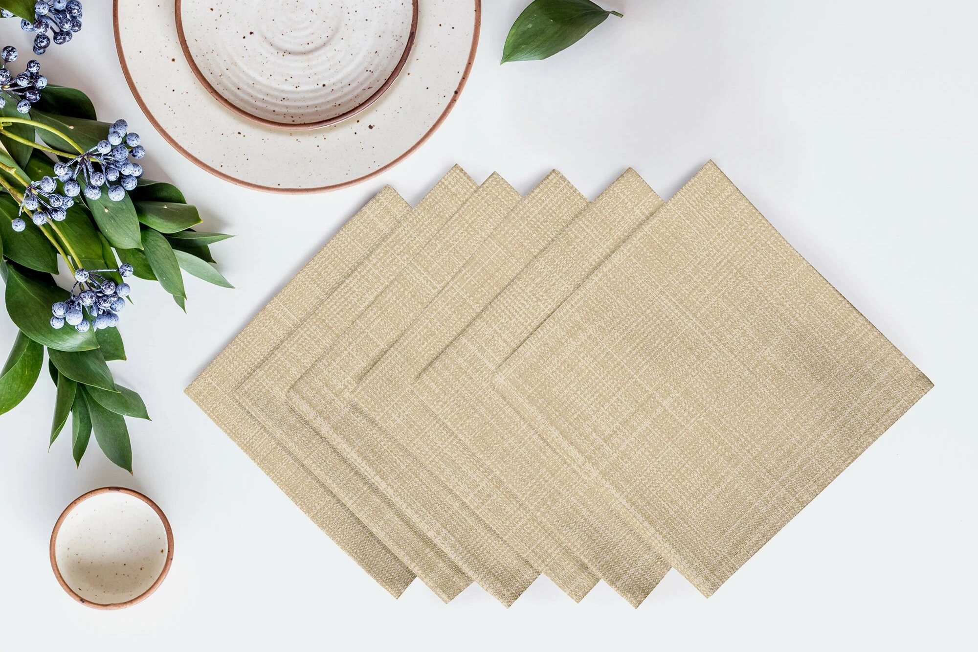 В этой категории достаточно двух вещей: салфетки и чистая столешница. Если хочется — можно добавить небольшую скатерть или раннер, но необязательно.