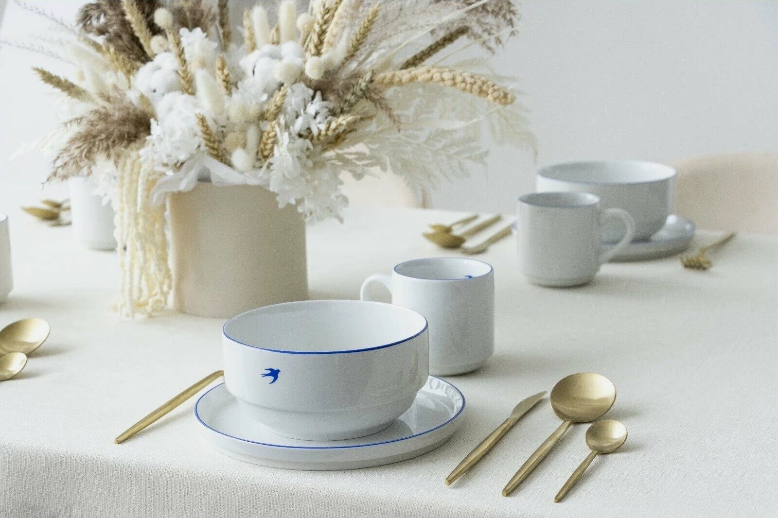 Это стиль для тех, кто любит красоту без помпезности. В отличие от лаконичной версии, здесь появляется больше слоёв, продуманности и визуальных акцентов: текстиль, дорожка, несколько видов стекла, набор приборов. Стол получается структурным и аккуратным, но остаётся не перегруженным.