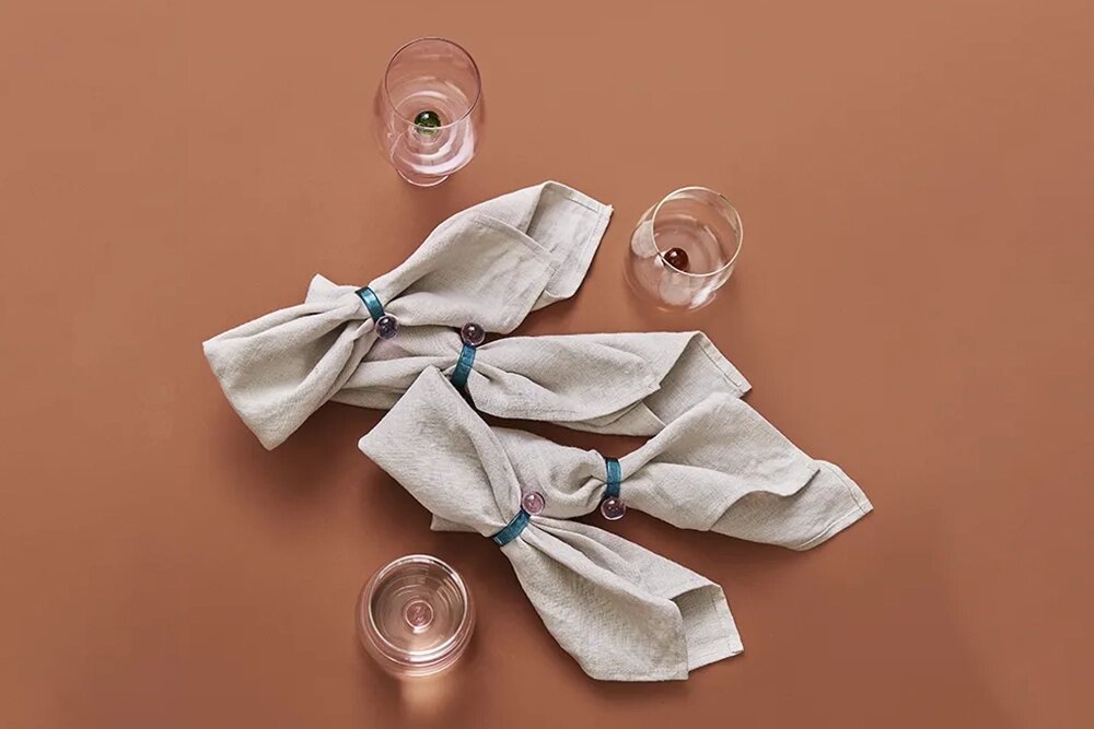 - салфетки из хлопка или льна в кольцах из стекла, металла, керамики.
